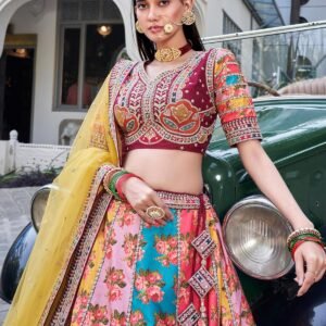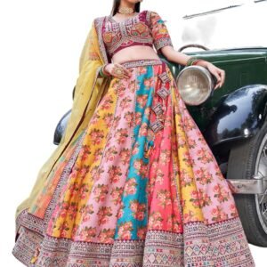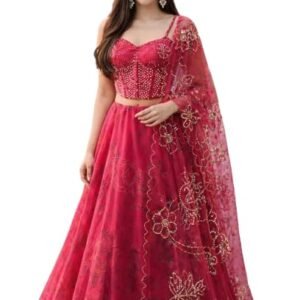 Lehenga Choli For Womens And Girls et For Womens And Girls Hevay Pure Organza digital printed 8mtr flair lehnga with canvas patta can can Chaniya Choli Wedding Pink