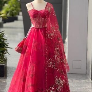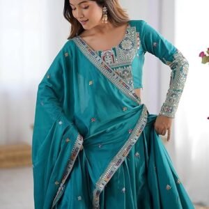 Women’s Chiffon Lehenga with Mirror and Sequins work.