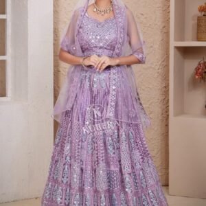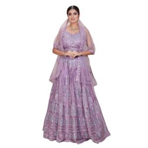 Kubera Women’s Lehenga Choli Set – Traditional 3-Piece Indian Outfit with Dupatta | Wedding, Festive Ethnic Dress | Designer Lehenga for Women | Light Purple | Free Size