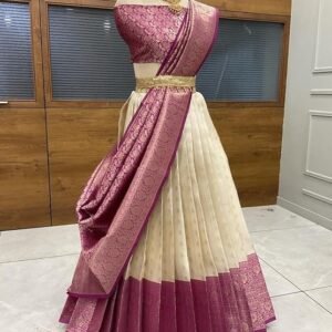 Elegant New Traditional South Indian Half Saree for Women – Perfect Blend of Heritage and Style for Festive Occasions (Sea Green)