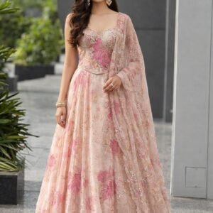 Lehenga Choli Indo-Western Draped Set For Womens And Girls Trending Digital Print Hevay Pure Organza digital printed 8mtr flair lehnga Lehenga Blouse Wedding Party Letest Off White