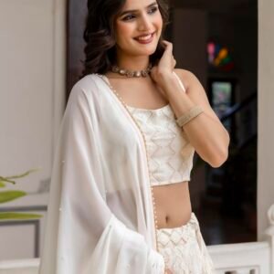 Georgette Embroidery Work Semi-Stitched Lehenga Choli With Dupatta For Women(L64-New-Bridal-Latest-Wedding-Sequnce-Lehenga-White-Designer-Free)