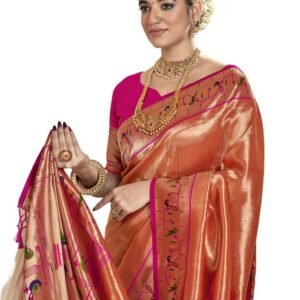 Women’s Tissue Silk Saree | Sari for Women | Paithani Soft Silk Sarees With Unstitched Blouse Piece (3531S1195A_Orange)