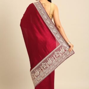Women’s Wine Chiffon Embroidered|Zari Saree