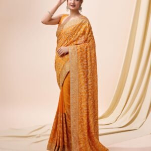 Women’s Vichitra Silk Embroidery Work Saree with Unstitch Blouse Piece (K1098-Yellow)