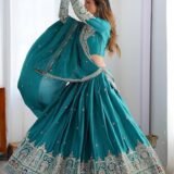 - Lehenga Waist-: 44 inch, Lehenga Length-: 44 inch, Dupatta Length-: 2 Miter Lehenga Type-: Semistiched, Dupatta Type-: Stitched, Blouse Piece-: Unstitched 1 Mtr Premium Chinon Silk Fabric – Crafted with luxurious Chinon silk for a soft, elegant, and rich look perfect for festive and wedding occasions Heavy Embroidered Design – Intricate thread and embroidery work all over the blouse and lehenga skirt for a premium traditional appeal Perfect for All Occasions – Suitable for weddings, sangeet, Navratri, Diwali, festive functions, receptions, and engagement ceremonies