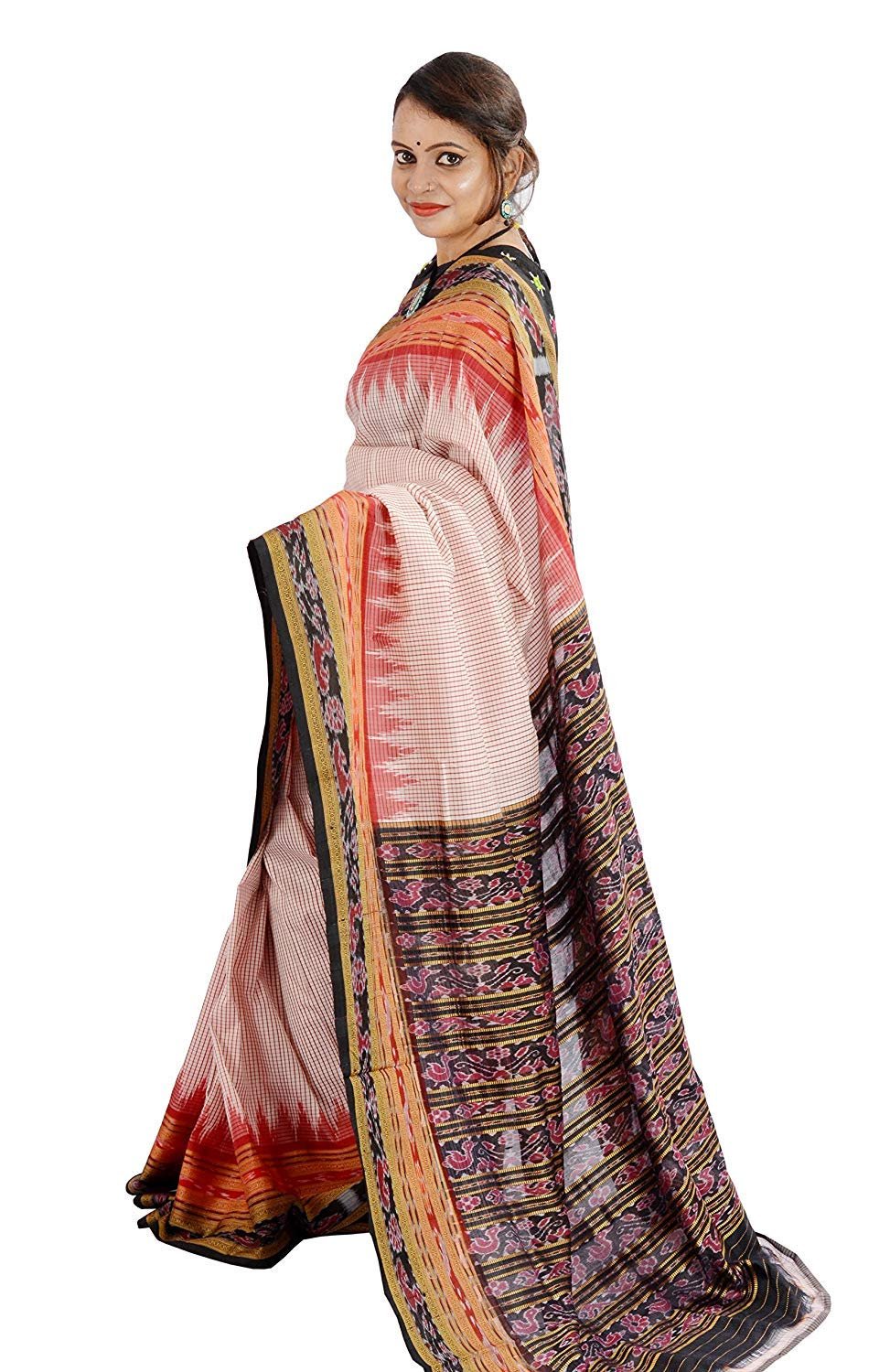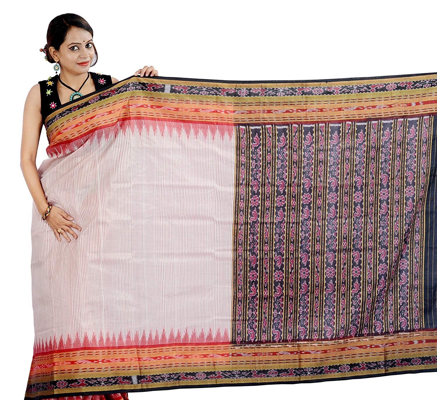 Handmade Pure Mulburry Khandua Natural Silk Ikkat Sambalpuri Saree For Women/Ethnic Wear/Traditonal Saree/Handloom Saree (122_White)