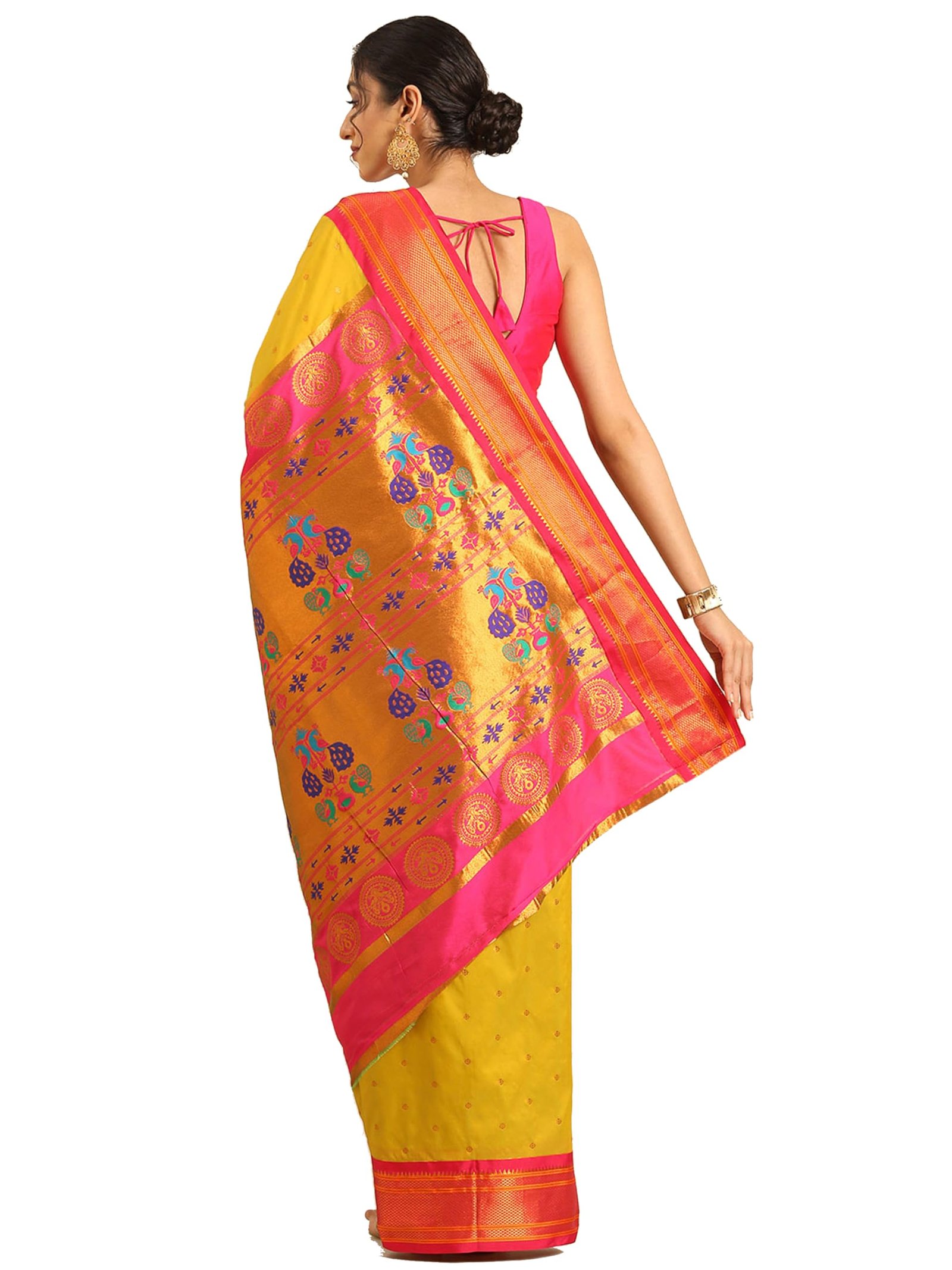 - Luxurious Silk Blend Fabric: Made from a premium silk blend of 30% silk and 70% polyester, this Paithani saree is lightweight, durable, affordable, and offers a rich traditional luster. Saree weaved on Powerloom