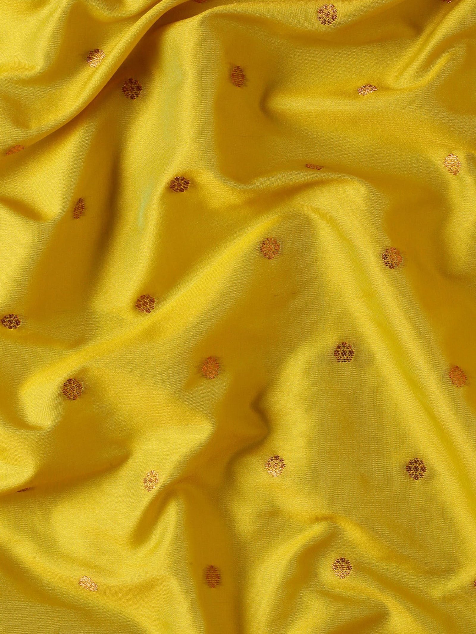 - Stunning Traditional Design: Features elegant small copper zari gol butti (polka dot) motifs on the body, an intricate zari chatai (checks) border, and a vibrant peacock motif pallu woven with resham threads.