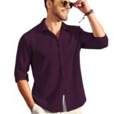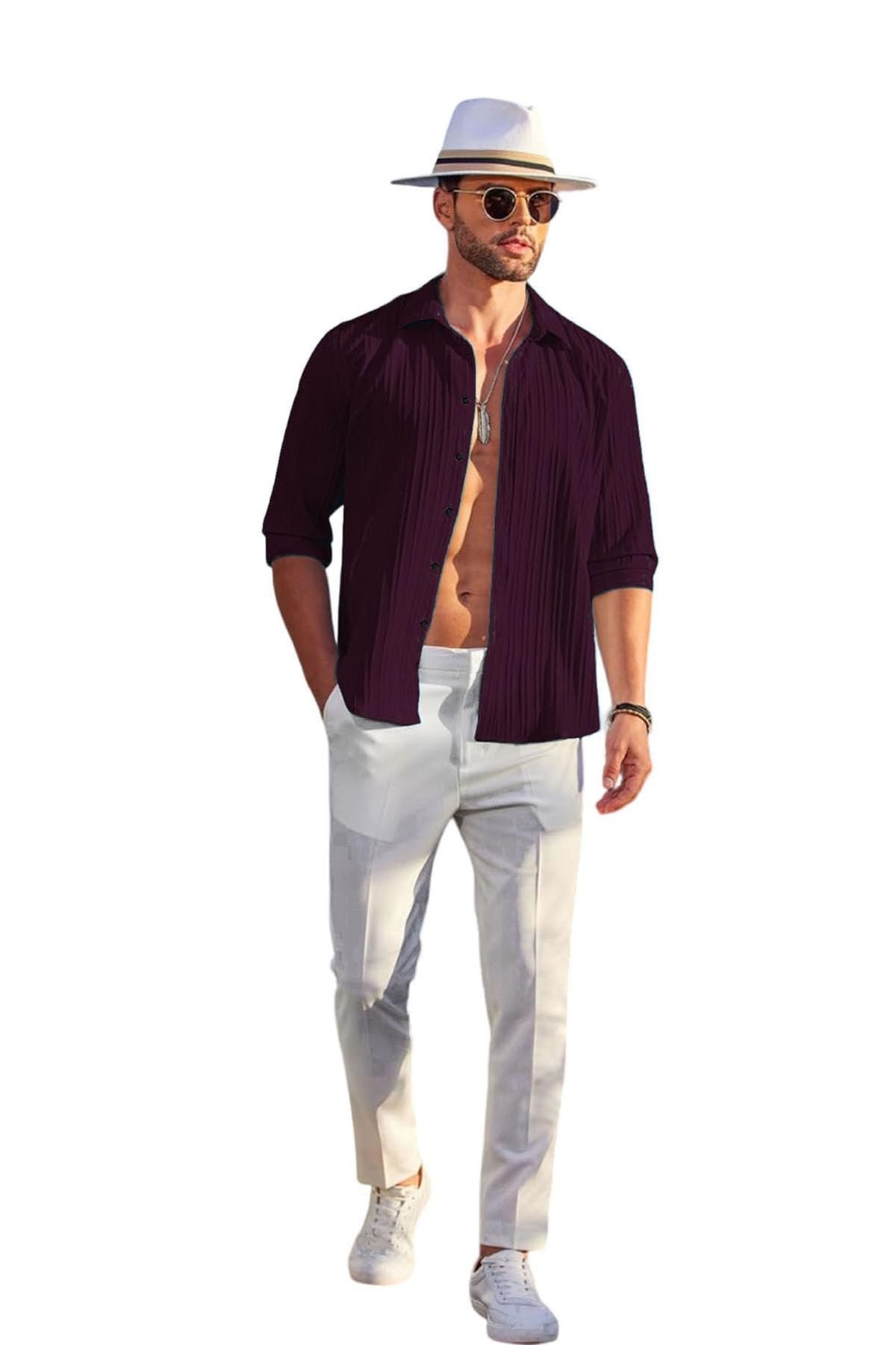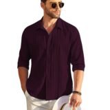 - 【Unique Design】Mens casual shirts feature long sleeve,spread collar, solid color,slight vertical ribbing,relaxed fit,simple and fashion