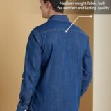 Crafted from 100% cotton indigo denim in a durable 2/1 twill weave, this Men’s Casual Denim Shirt combines comfort with rugged durability. The 7.9 oz midweight fabric is perfect for year-round wear, while the regular fit offers a relaxed, flattering silhouette. The rich indigo color evolves with each wash for a unique, worn-in look. Ideal for casual outings or layering, it pairs easily with jeans, chinos, or shorts. Reinforced stitching ensures long-lasting quality, making it a versatile and dependable wardrobe essential.