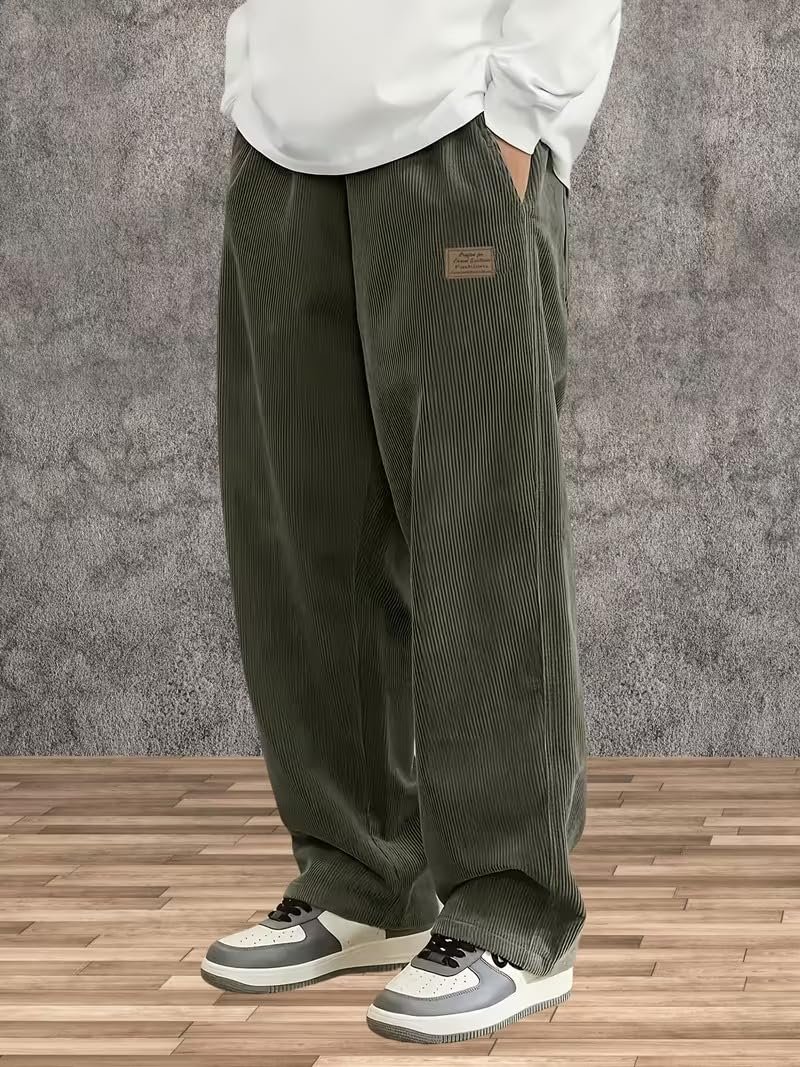 Men’s Comfortable Baggy Corduroy Pants | Relaxed Fit Stretch Waist Trousers for Everyday Wear | Casual Trouser for Man Blue