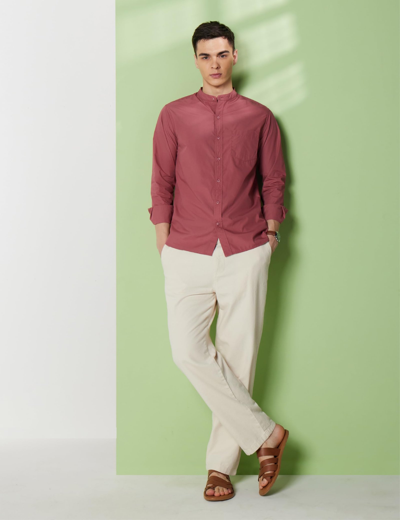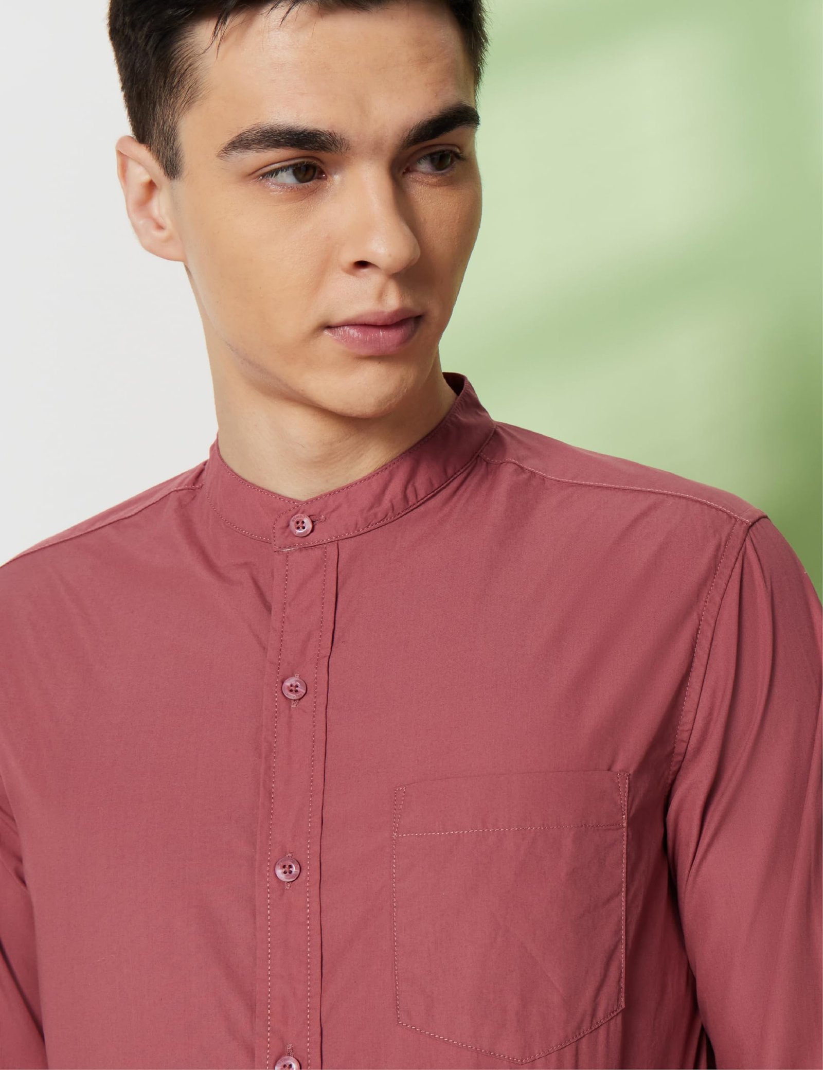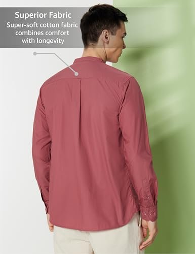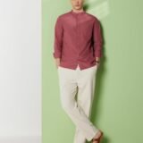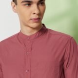 Men’s Mandarin Collar Casual Cotton Poplin Shirt – Regular Fit |Full Sleeve | 100% Cotton | Available in Plus Size Dusty Pink