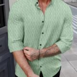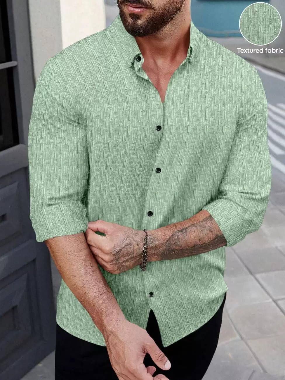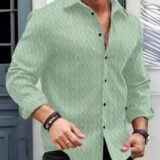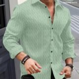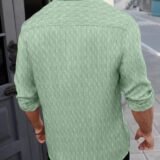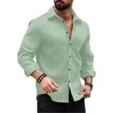 Men’s Regular Fit Button Down Dress Shirts Textured Long Sleeve Casual Hawaiian Shirt Pista