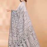 Women Viscose Brasso Floral Print Saree With Unstitched Blouse Piece 73440 – Grey