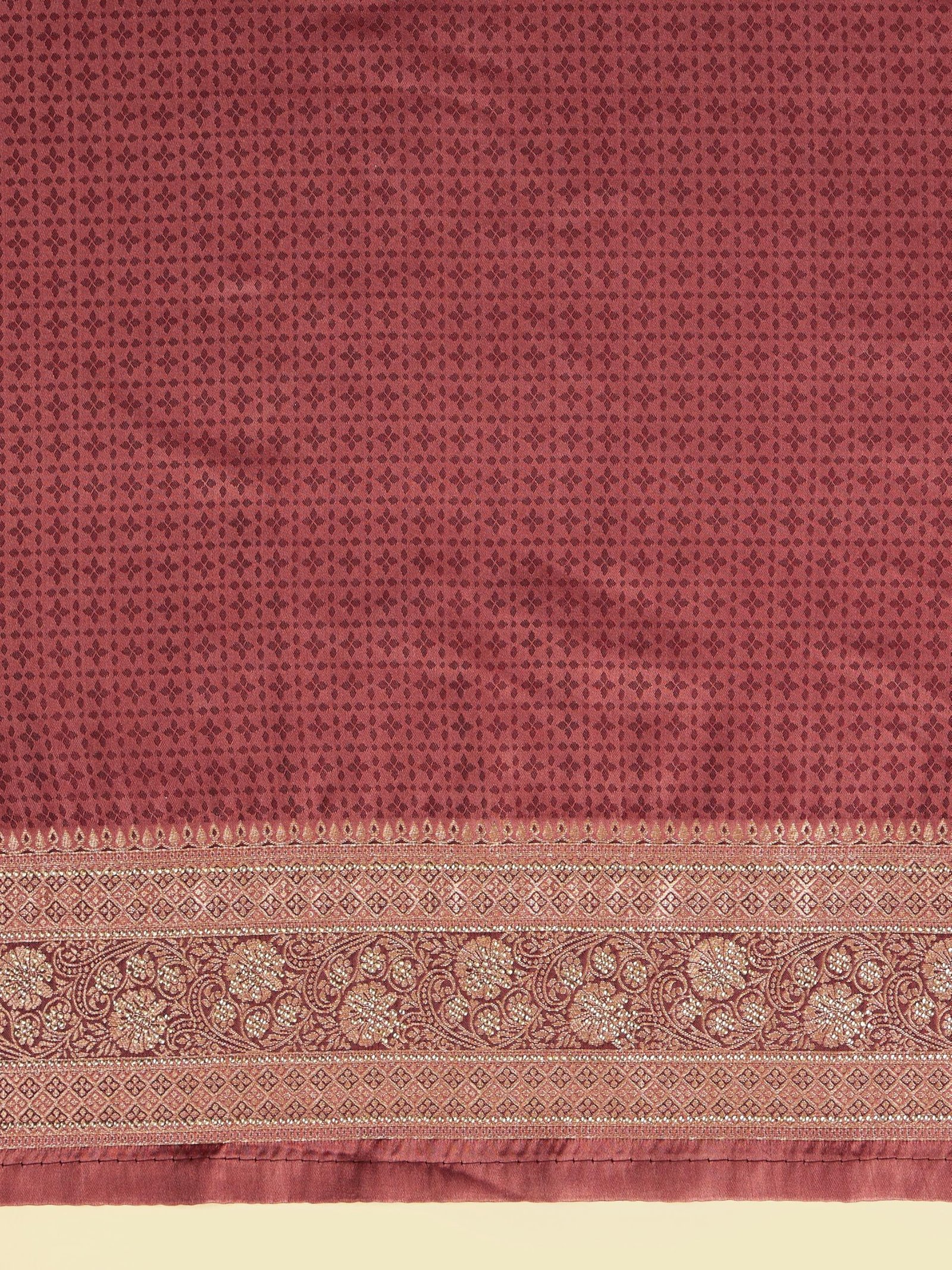 - Design:-Wrapped in elegance, this Dusty Pink Saree sets a new sartorial standard. Perfect for gala dinners or festive get-togethers, its pretty hue is a treat to the eyes. Comes with an unstitched blouse fabric to let you curate a look that’s uniquely ‘you’. An embodiment of grace, this will be your go-to for any celebration. Note: Saree does not include any accessories.