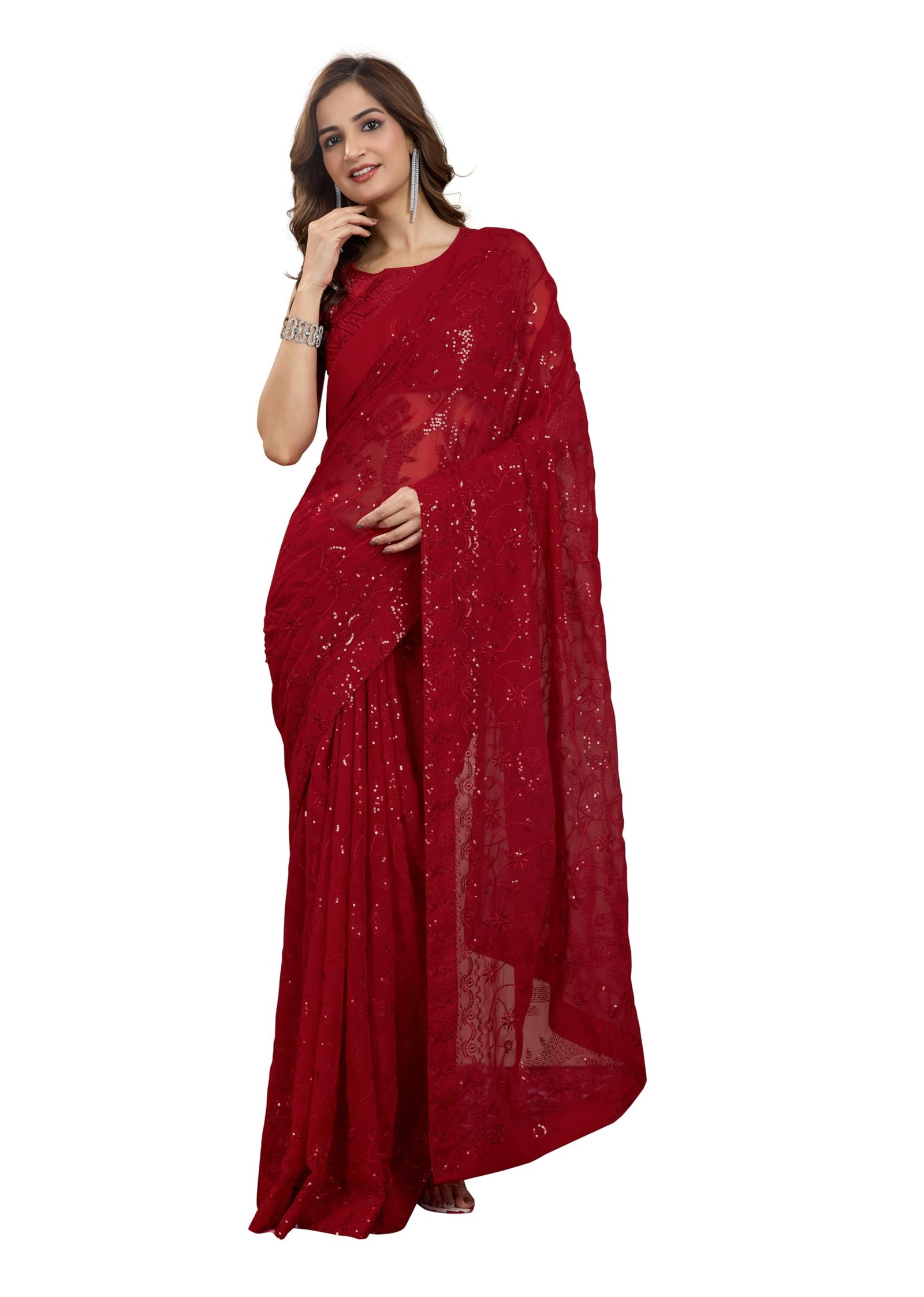 - Color: Saree: Red | Blouse: Red