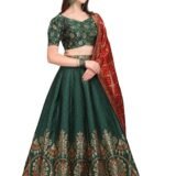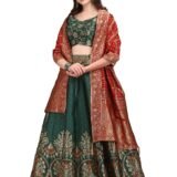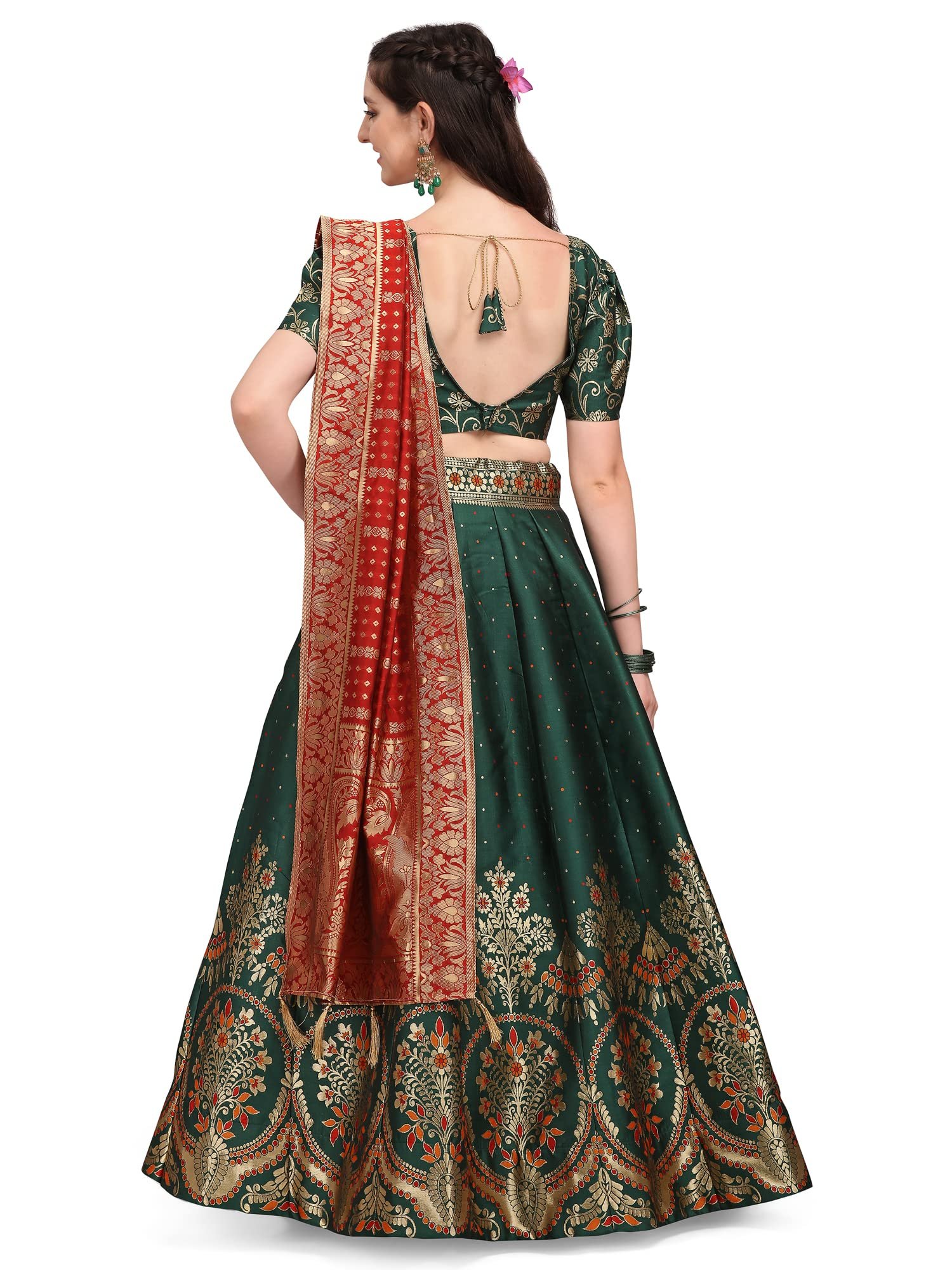 Women’s Jacquard Semi-Stitched Lehenga choli (Arambh-D-Green_Green_Free Size)