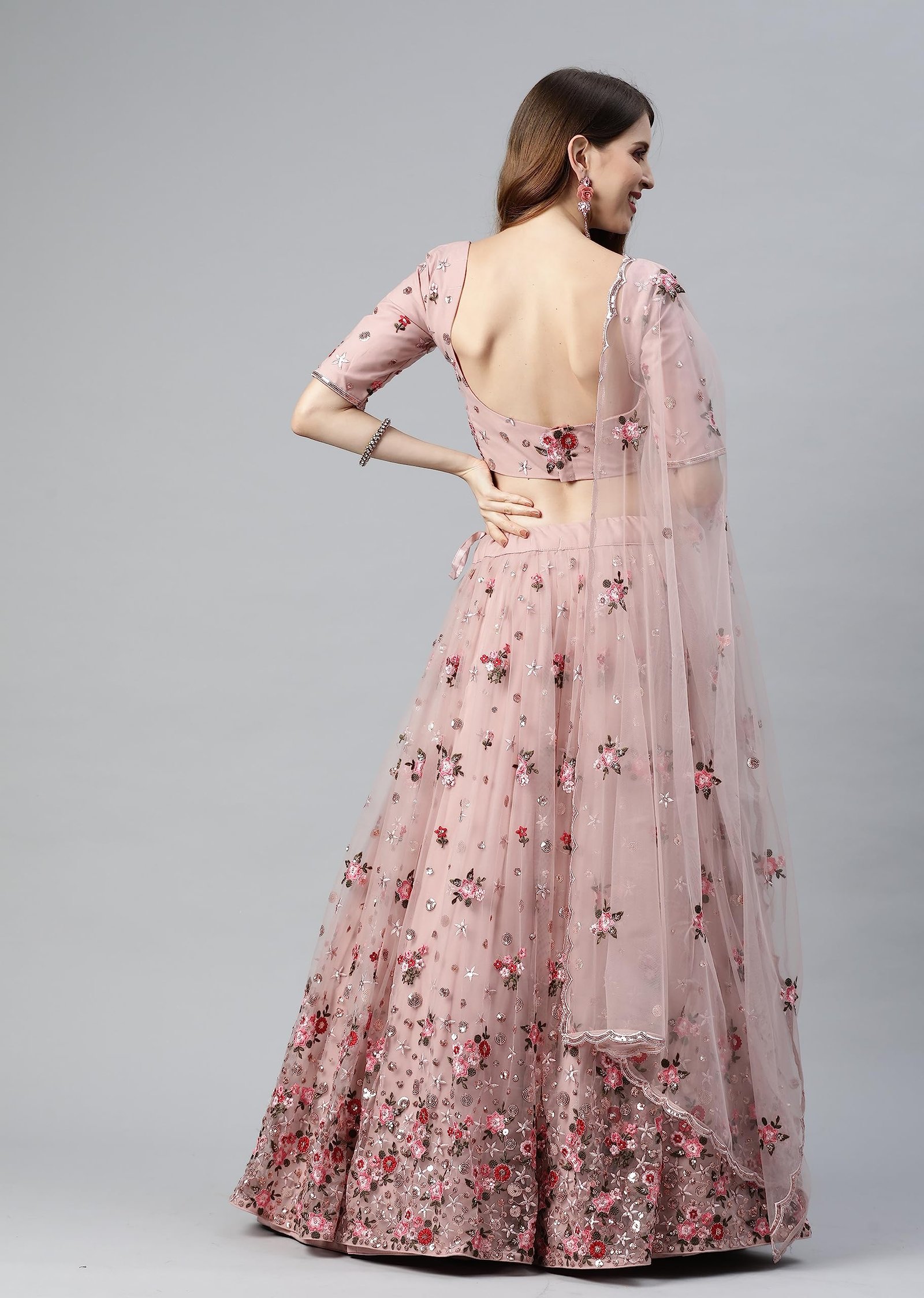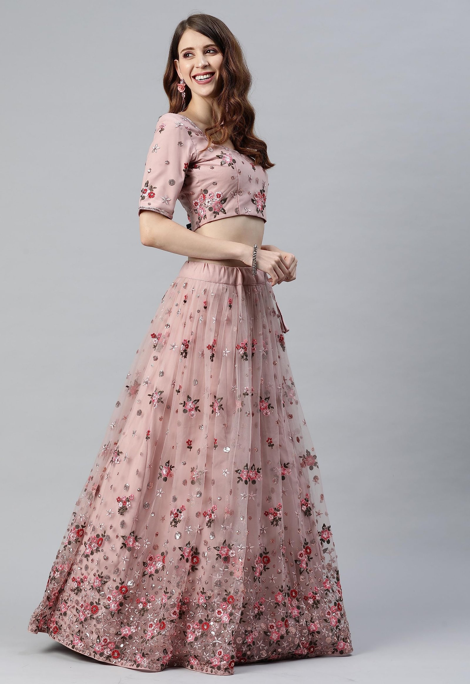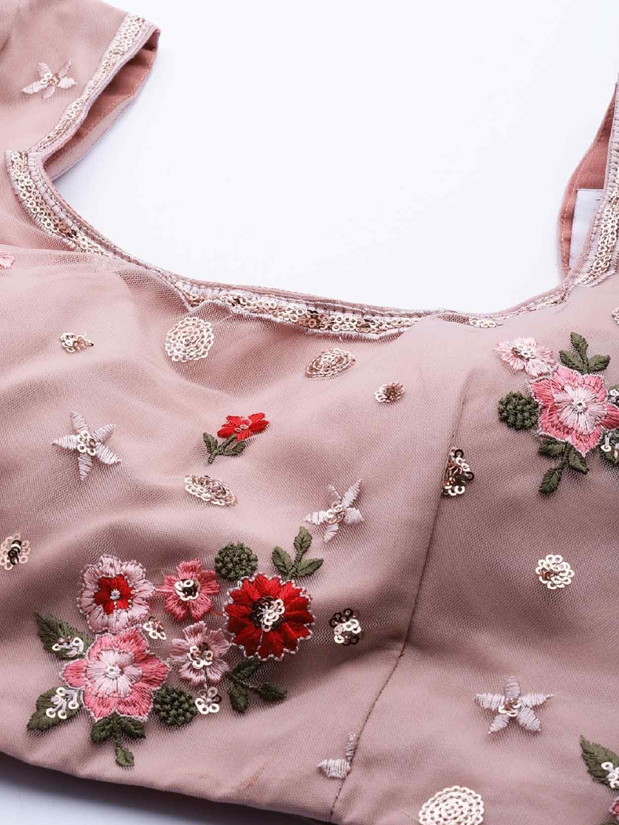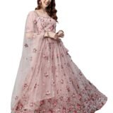 Women’s Net Embroidered Semi-Stitched Lehenga Choli with Dupatta (1741-DustyPink-Wedding-Girlish-Latest-Lehenga; Free Size)