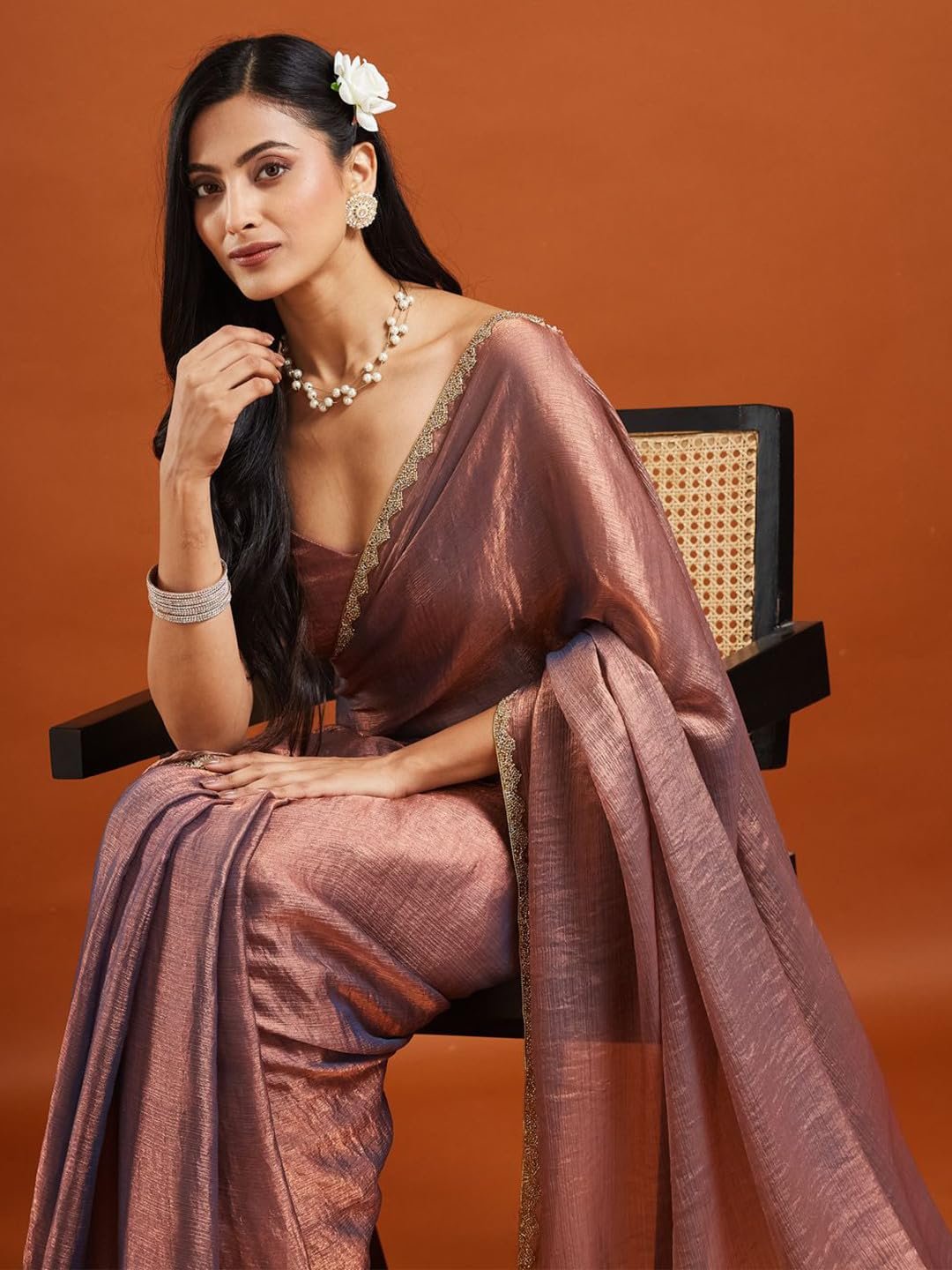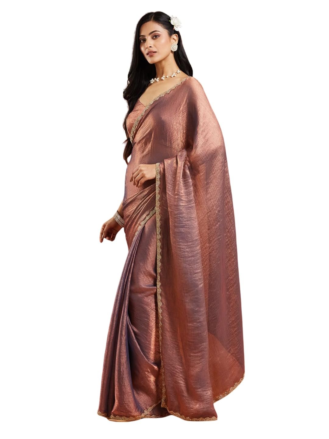 - Luxurious Shimmer Organza Fabric – Made from premium lightweight organza blend that gives a soft metallic sheen and elegant drape, perfect for festive and evening occasions.