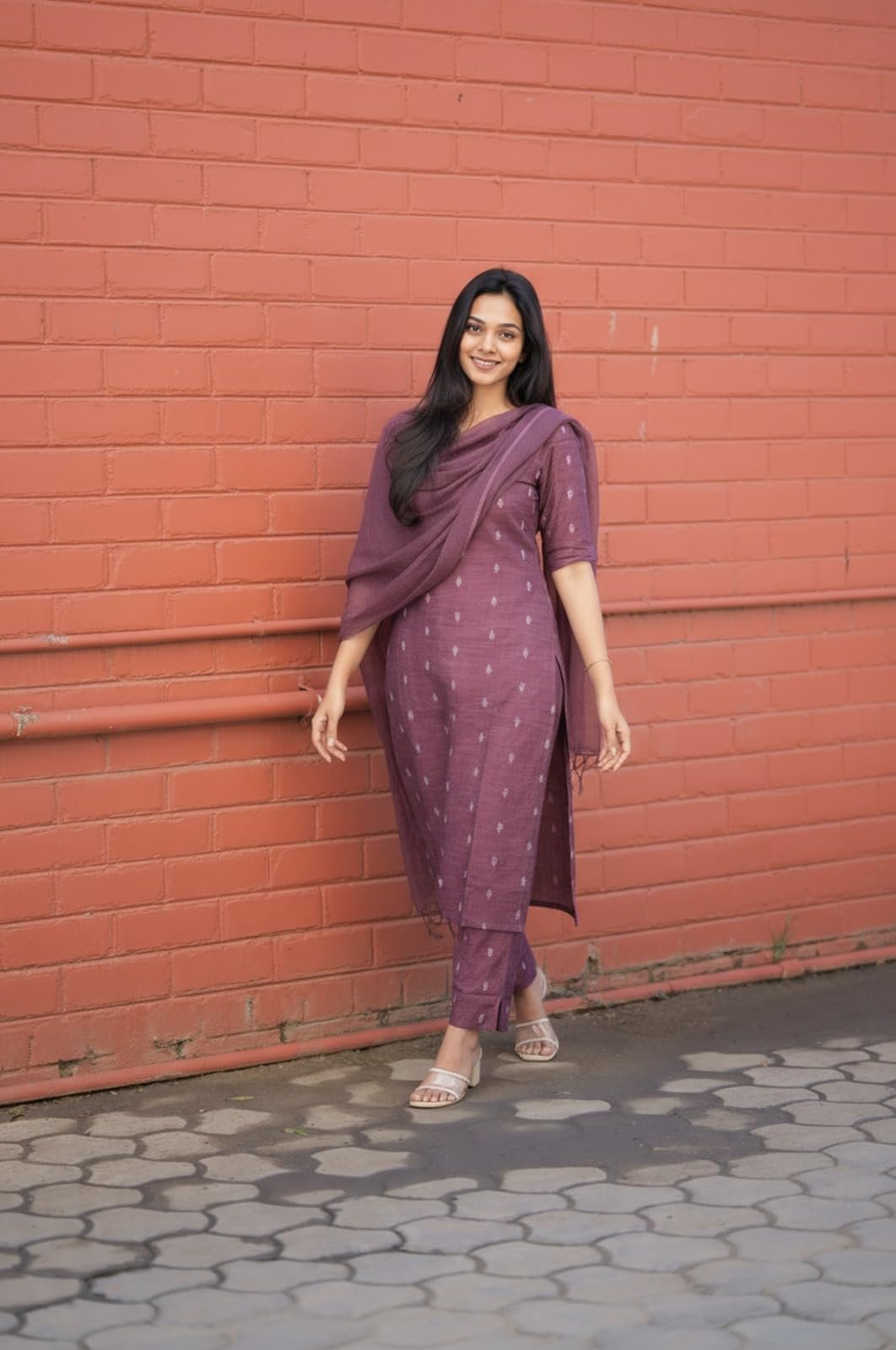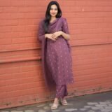 Step into timeless elegance with Women’s Purple Printed Kurta Set, a stunning 3-piece ethnic outfit made from luxurious pure viscose fabric. This kurti set for women includes a beautifully printed kurta, matching pant, and flowy dupatta, making it a perfect choice for both festive wear and party wear occasions.Designed to combine traditional charm with modern comfort, this ethnic suit set for women enhances your festive wardrobe effortlessly. Whether you’re attending weddings, family events, or cultural celebrations, this kurta set with dupatta delivers a perfect mix of grace and comfort. The soft fabric drapes beautifully, ensuring you look stylish all day long.Choose for the latest kurta set designs, kurti pant sets with dupatta, and party wear kurta sets for women that reflect elegance, comfort, and authentic Indian craftsmanship.