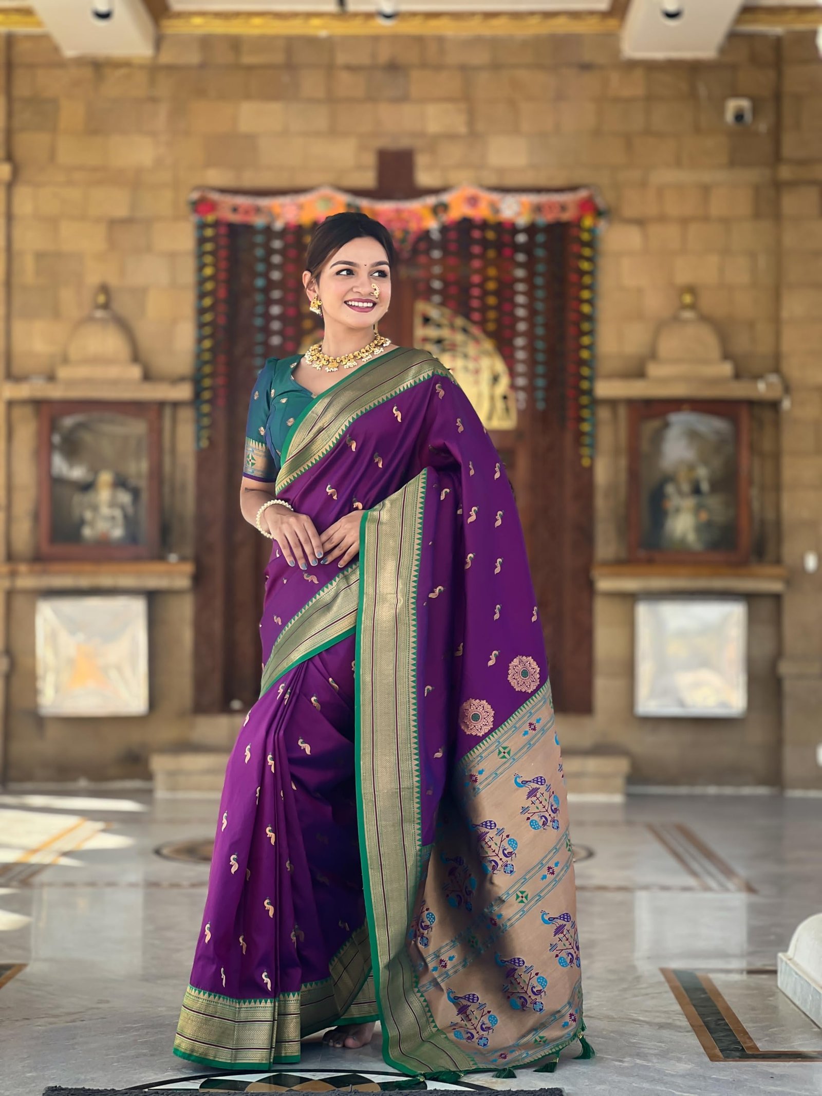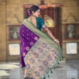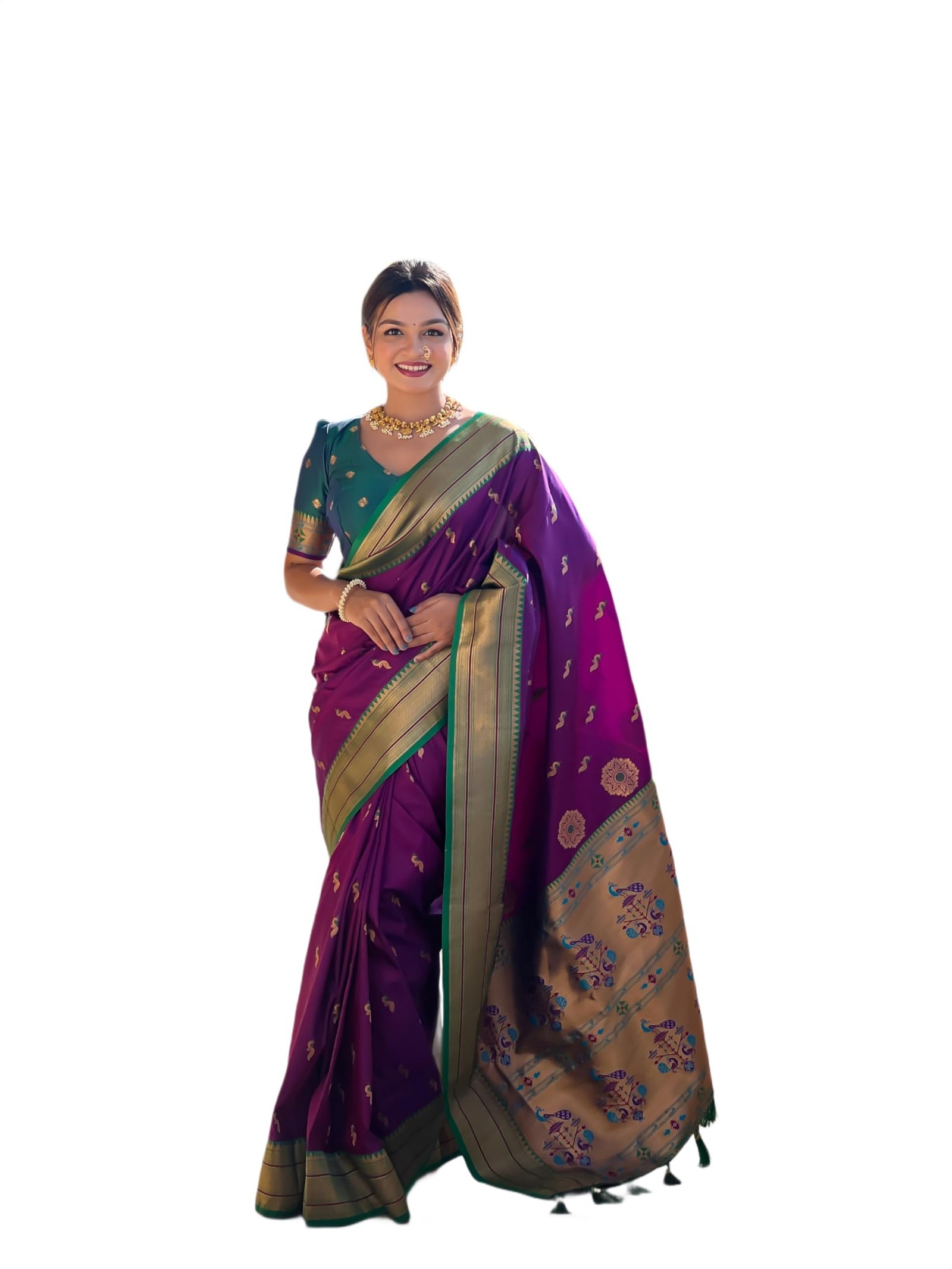 - SOFT PAITHANI SILK – Crafted from premium-quality soft Paithani silk that offers a smooth texture, rich shine, and comfortable drape.