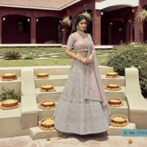 Women’s Heavy Work Organza Lehenga Choli Set | Embroidered Festive, Peach